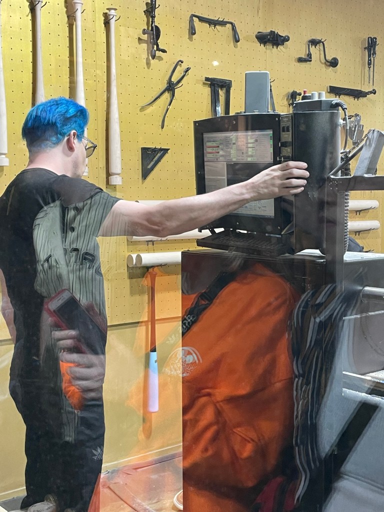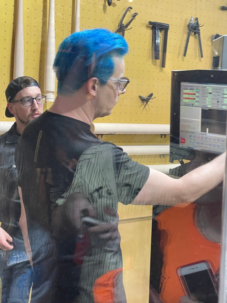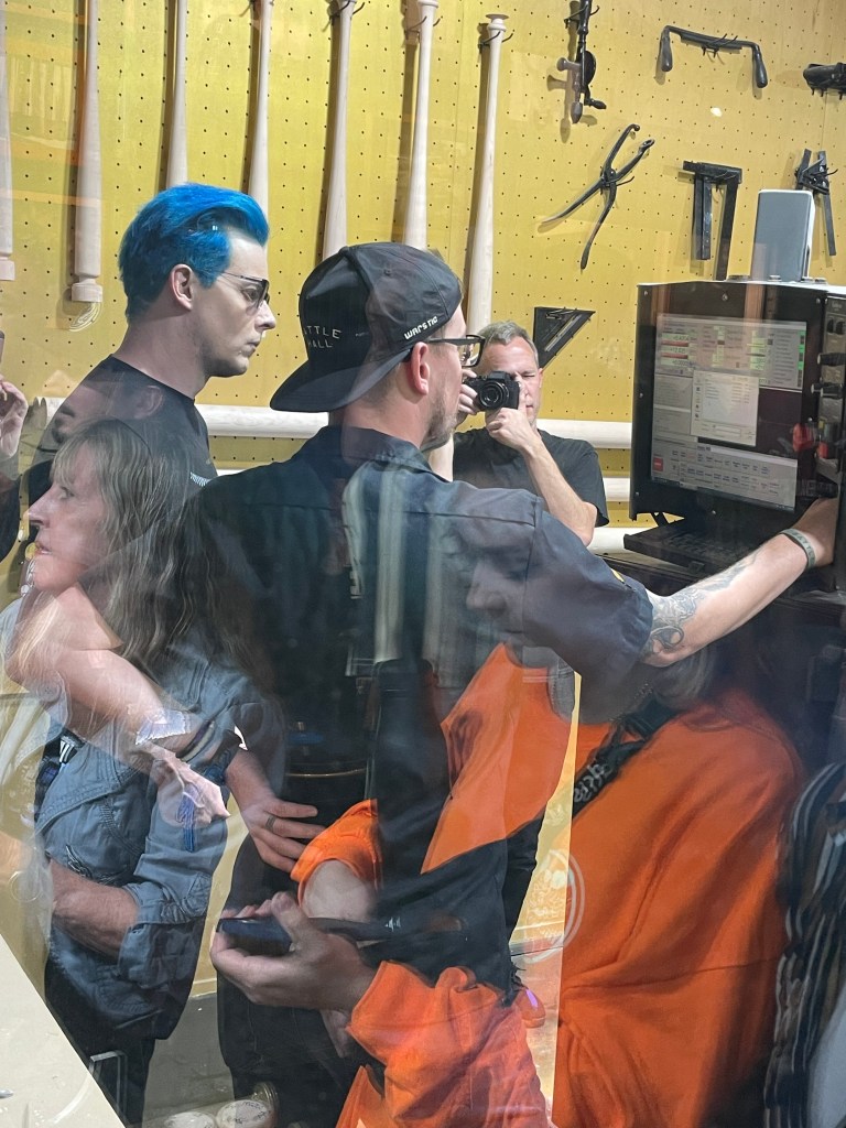 This was fun one because I convinced my best friend and her husband to go. We went to pregame batting practice at Warstic Headquarters. The following day, they attempted a drumstic on the lathe